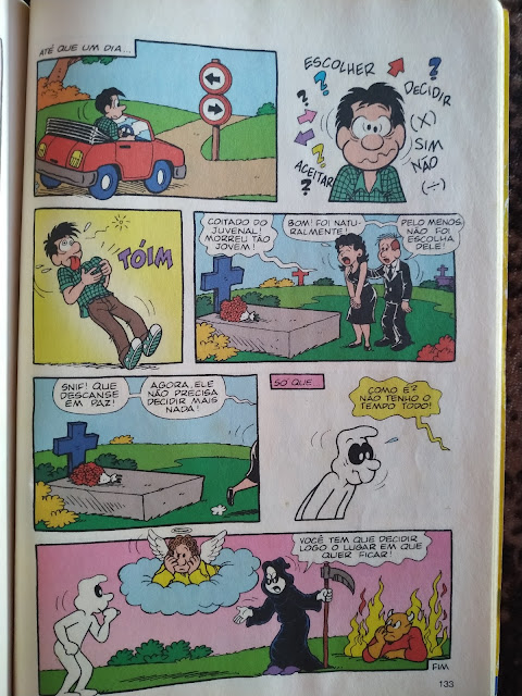 Almanacão de Férias 42 (2005) - Coletânea de histórias, com Mônica e seu pai num momento fofinho, Bidu farejando seu dono e momento filosófico com os Napões, do núcleo do Horácio. Em seguida Marina querendo pintar natureza morta, Papa-Capim mostrando que o melhor aquário é o natural, Chico Bento almoçando na casa de Hiro e conhecendo a culinária japonesa, e a brincadeira da lata na cobra com a Mônica. Cascão numa operação de guerra para se esconder da mãe, e depois páginas de passatempos. A edição conta com campanhas publicitárias de brinquedos, bolinhas, mochilas da turma e um recado sobre os pais participarem da educação dos filhos. As historinhas continuam com a Turma do penadinho e a vida de Juvenal, o indeciso, e uma pulga atacando a turma do cemitério. Cascão e suas meias de lama no encontro com Cascuda, e a noite de fondue escondida da Magali, com participação da Denise genérica de outros tempos. Magali e Dudu confundem o Do Contra, e Dudu ainda fica com medo das estrelas no mar. Fechando a edição uma ótima história do Cebolinha cuidando de sua irmãzinha. E a tirinha final, bem antiga.