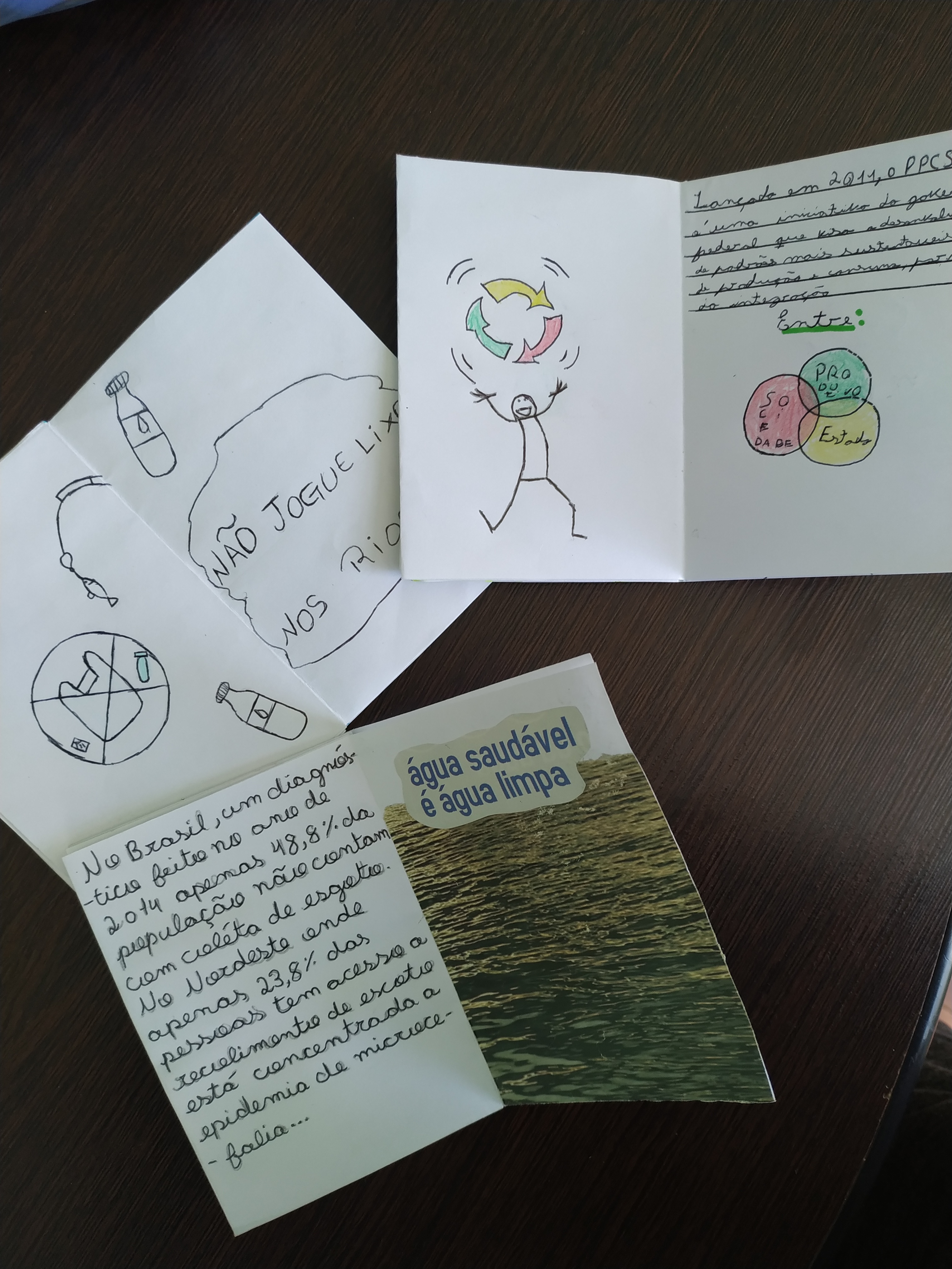 Fanzines dos alunos do 7º ano da Escola Manoel Vicente do Amaral, sobre os ODS (Objetivos de Desenvolvimento Sustentável), da ONU.
