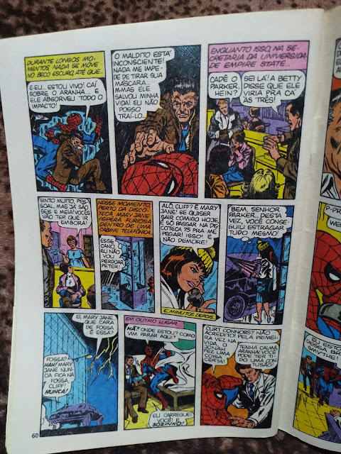 A Teia do Aranha 47 (setembro de 1993) - O filho de J. Jonah Jameson, John, foi raptado. Ele estava em sono criogênico para ser curado de uma contaminação que sofreu na lua. O dno do globo diário quer contratar o pessoal do Clarim para lavancar as vendas. Spencer Smythe estava por trás dos ataques ao Homem-Aranha por parte do Camaleão e de Electro. Uma múmia é vista escalando as paredes do Clarim, e o Homem-Aranha vai até lá e confronta a misteriosa figura, que rapta Jameson. Trata-se do Homem-Lobo, o próprio filho do editor do jornal, em sua forma transformada, controlado por Smythe. Ele volta a sua forma humana e cai de uma ponte, quando o Aranha não consegue segurá-lo, mas desaparece num clarão antes de cair na água. Jameson, furioso, chama o Aranha de assassino em seu jornal, e a população está com medo do herói. Mas ele só poderá processar Jameson por difamação se revelar sua identidade. Com a difamação, a venda de brinquedos do Aranha, que poderia render um dinheiro, é cancelada. Peter Parker marca encontro com Mary Jane, querendo retomar a relação, e se livrar de Betty, que ainda não se divorciou oficialmente de Ned Leeds. Mas Smythe aproveita que Jameson aparece para encomendar um novo caça-aranha, e o prende a uma algema. Quando o robô caça-aranha derruba o herói nas ruas, Smythe prende ele também junto com Jameson e uma bomba matará os dois em 24 horas. Smythe está morrendo por conta da exposição a elementos radiativos quando confeccionava os caça-aranha para Jameson, e por isso quer vingança. Depois de muitas atribulações, o Aranha consegue soltar a algema a tempo. Jameson reforça seu ódio pelo herói, que o faz se sentir um homem inferior. Num lampejo de sobriedade, Jameson teve a chance de desmascarar o Aranha, mas hesitou, pois havia acabado de ser salvo por ele. Histórias de Marv Wolfman e desenhos de John Byrne e Keith Pollard.
