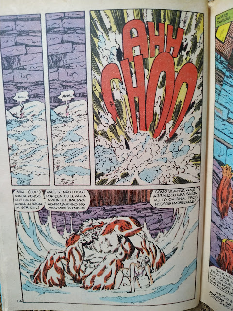 Superaventuras Marvel 68 (fevereiro de 1988) - Capítulo final de "A Queda de Murdock", por Frank Miller, com seu roteiro bombástico, com cortes perfeitos de uma cena para as consequências da mesma, e as ilustrações magistrais de David Mazzucchelli, com personagens fortes, humanos, belos e com expressões marcantes. O mercenário do governo chamado Bazuca, manipulado pelo rei do Crime Wilson Fisk, faz uma bagunça matando civis na Cozinha do Inferno, com apoio aéreo, e o Demolidor chega até a disparar contra um helicóptero, matando seu piloto na explosão. Glorianna O'Breen é ferida e levada para a igreja da irmã Maggie, onde Foggy a aencontra e passa por Matt sem reconhecê-lo. Os Vingadores levaram Bazuca por ordem do governo, mas o Capitão América, reconhecendo a necessidade de investigar, descobre detalhes da operação baseada na experiência do soro do supersoldado. Bazuca fica fora de controle, e depois de ser derrubado pelo Capitão , é levado pelo Demolidor até o Clarim Diário, e a partir daí o Rei é investigado, sofrendo mais uma derrota, mesmo que em sua maior parte moral, pelas mãos de seu inimigo, mesmo depois de destruir sua vida. Matt e Karen andam pela cidade juntos novamente. Na segunda história temos uma aventura do Senhor das Estrelas, entrando num planeta onde havia duas sociedades, uma alada que vivia no céu, em nuvens sólidas, e outra abaixo, que tinha que completar uma série de boas ações, sempre recompensadas, para ganhar suas asas e ascender. Ele aprende lições de reciprocidade enquanto interfere nesta sociedade estranha de seres espirituosos. Roteiro de Doug Moench e arte de Tom Sutton. Fechando a edição, a Tropa Alfa, de John Byrne no texto e nos desenhos: Aurora, chocada ao encontrar Walter transformado em uma estátua de ouro, ouve a história de Lírio Dourado, uma mulher que se envolveu com o alquimista Diablo depois de um acidente que matou seu marido. Depois que Diablo foi atacado e supostamente morto, ela passou a se vingar dos homens transformando-os em ouro. Walter se liberta ao virar o Sasquatch e salva Aurora a tempo, pois ia ser transformada também. Lírio, que tinha um corpo todo mesclado de metal e carne, se desfaz e pó junto com o castelo onde vivia, numa cena aterrorizante.